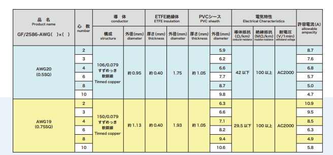 KANEKO CORD 柔性电缆G-FLON/UL2586